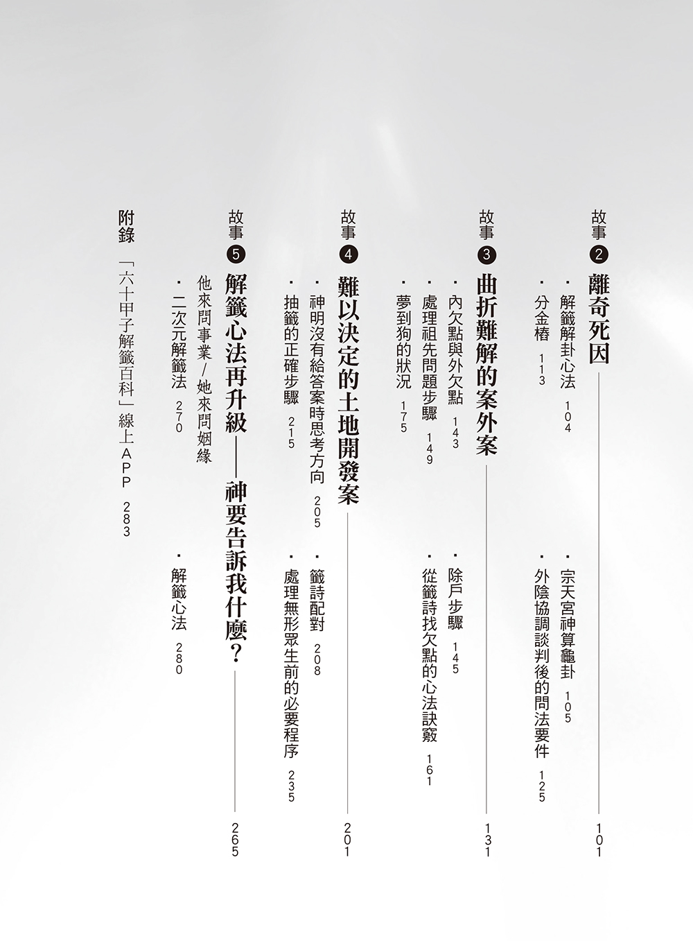 統合邏輯歸納、思考方向,諸多「從籤詩找欠點的心法訣竅」、「二次元解籤法」、「問事心法」、「解籤心法」……絕對是問神問事的必備寶典!