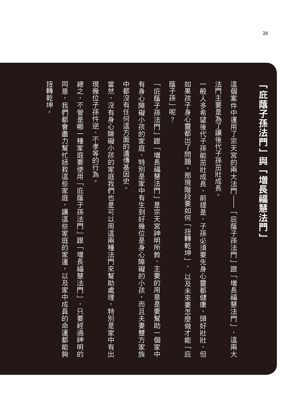 神明獨家傳授「庇蔭子孫法門」、「增長福慧法門」,讓後代子孫得以茁壯成長,讓需要幫助的家庭以及家中成員的命運都能夠扭轉乾坤。